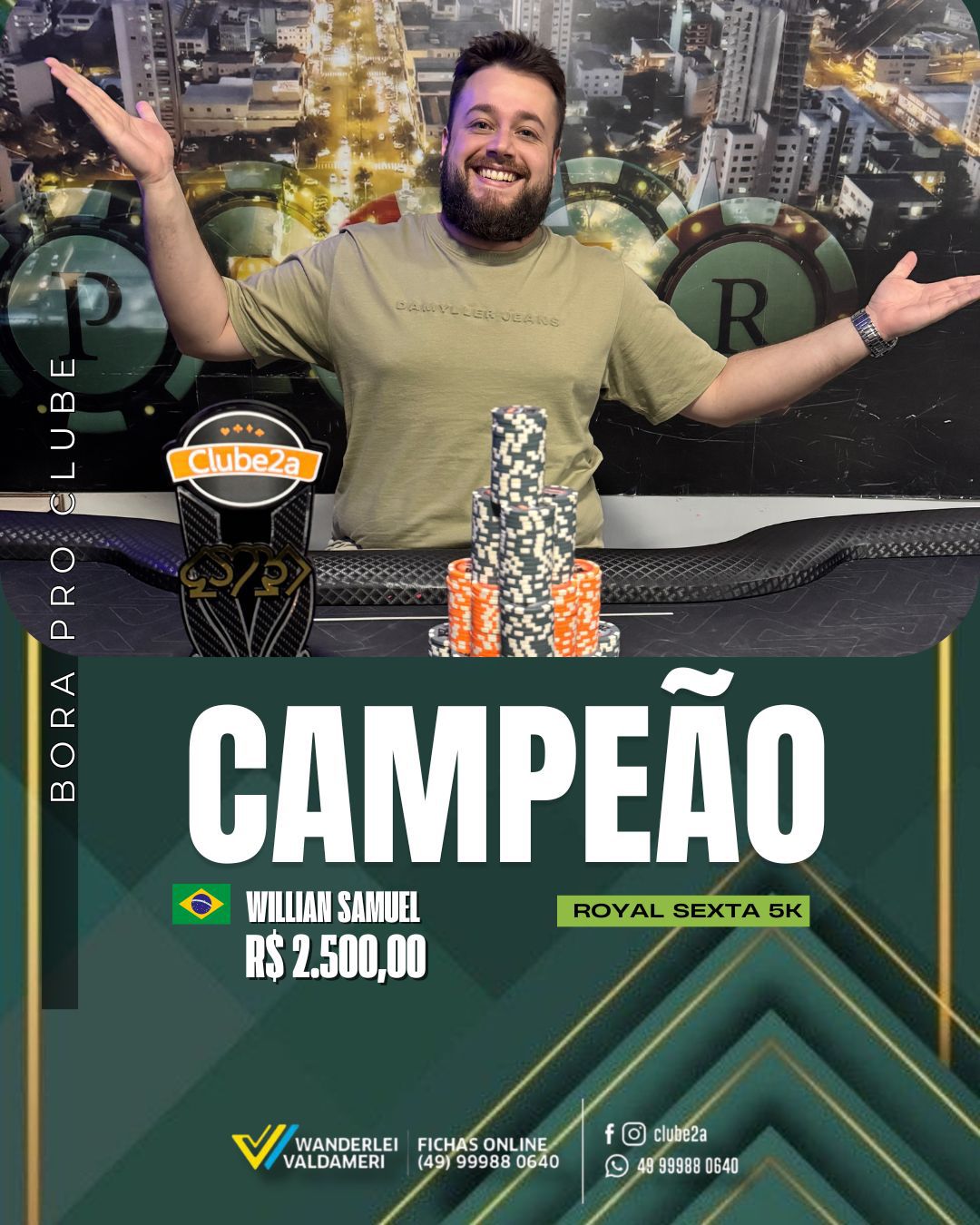 SATELITE 17 ANOS CLUBE2A - 22/03 TICKET-700 💰 Buy-in: 30 – 10K • Rebuy: 30 – 10K • Add-on: 30 – 30K 📅 Bônus: 5K inscritos antes das 20:00 • Blinds: 10 min 🕗 Início: 20:00 • Late reg: 21:30