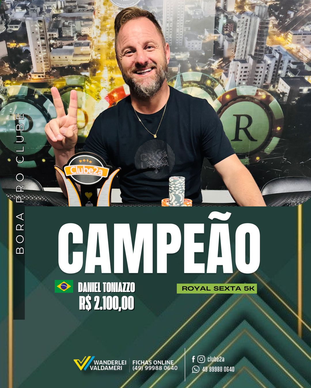 Depois de cravar o torneio online ontem, Daniel Toniazzo repetiu o feito hoje no ao vivo e levou a Roya...