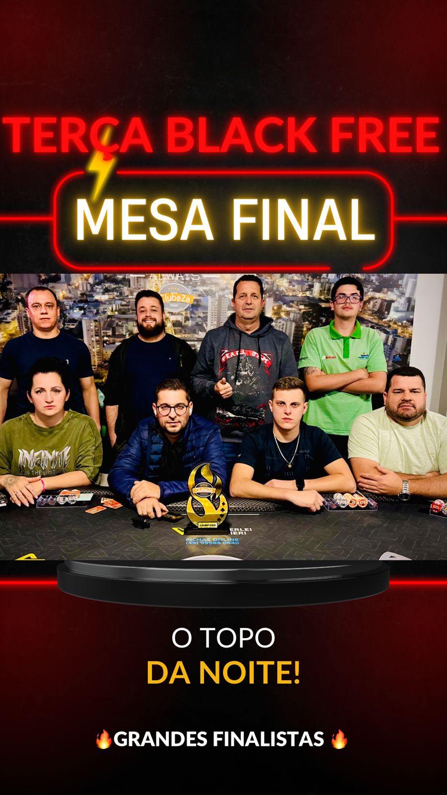 A casa lotou, o clima foi incrível e o jogo pegado do início ao fim — coroando uma mesa final disputadíssima! Agradecimento especial a todos que fizeram parte dessa noite gigante. 🙌