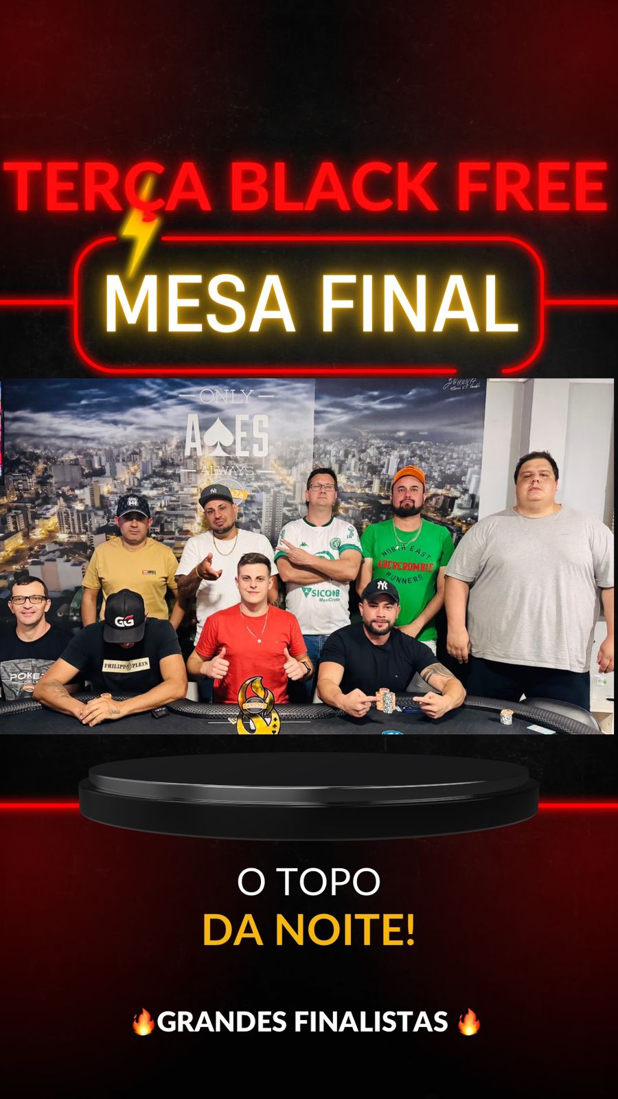 TERÇA BLACK FREE - 04/11 3K GARANTIDO 💰 Buy-in: Free (0+20) – 5K • Rebuy: 10 – 10K (máx. 50K) • Add-on: 50 – 50K 📅 Bônus: 5K até o fim do 1º blind • Blinds: 15/12 min 🕗 Início: 20:00 • Late reg: 22:20