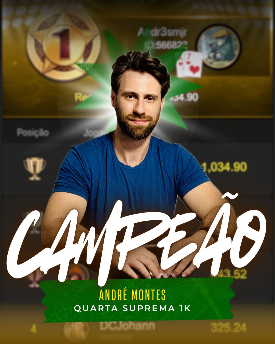 O Grande campeão do torneio de 66K Garantidos de 6 anos do Clube2a superando um Field de 227 jogadores...